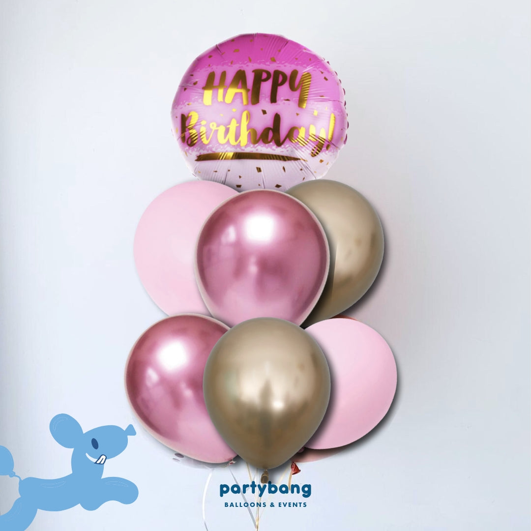 [Helium Inflated] 7pcs Balloon Cluster (Birthday Pink)